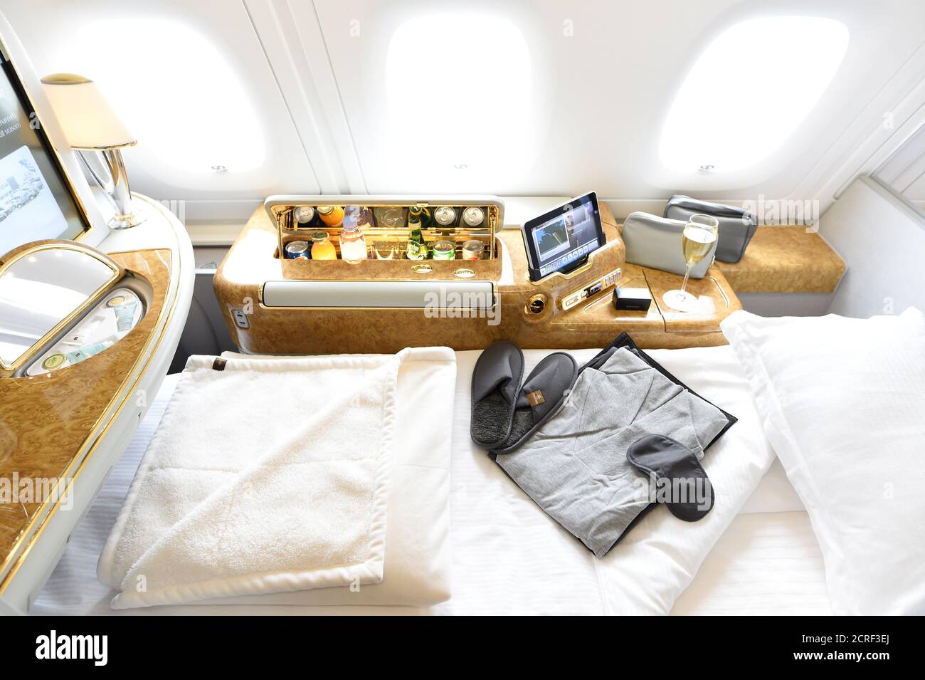 A First Class Suite Of An Airbus A380 Is Pictured During A Delivery Ceremony Of Emirates 100th Airbus A380 At The German Headquarter Of Aircraft Company Airbus In Hamburg Finkenwerder November 3 2017