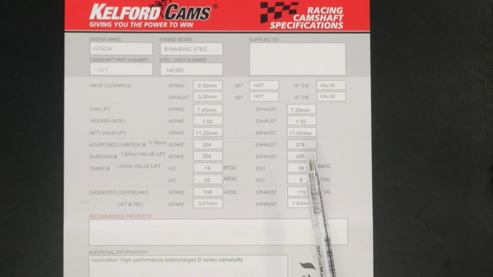 When timing the camshaft in the engine always use. There is a recommended intake centerline installation point on each cam card and it is important to install the cam at this point. First to dial in the cam you need.